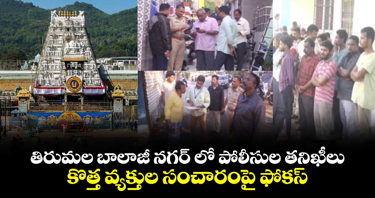 తిరుమల బాలాజీ నగర్ లో ముమ్మరంగా తనిఖీలు నిర్వహించారు పోలీసులు. స్థానికేతరులు వచ్చి కొండపై మద్యం, మాంసం అమ్ముతున్న ఘటనలను సీరియస్ గా తీసుకున్న పోలీసులు సోమవారం ( ఫిబ్రవరి 23 )తనిఖీలు నిర్వహించారు. ఈ తనిఖీల్లో పోలీసులు, టీటీడీ విజిలెన్స్ అధికారులు, ఫారెస్ట్ అధికారులు, రెవెన్యూ అధికారులు పాల్గొన్నారు. ఈ సందర్భంగా డీఎస్పీ విజయ్ శేఖర్ మాట్లాడుతూ… తిరుమలలో స్థానికులు నివాస ప్రాంతాలలో స్థానికులు మాత్రమే ఉండాలని కొత్త వ్యక్తులు ఉండొద్దని అన్నారు.
