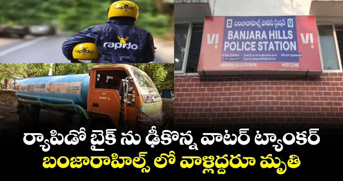 బంజారా హిల్స్ లో ఘోర రోడ్డు ప్రమాదం జరిగింది. వాటర్ ట్యాంకర్ ర్యాపిడో బైకును ఢీకొన్న ఘటనలో హోమ్ గార్డు సహా ఓ యువతి మృతి చెందారు. సోమవారం ( ఫిబ్రవరి 23 ) జరిగిన ఈ ఘటనకు సంబంధించి వివరాలిలా ఉన్నాయి.. బంజారాహిల్స్ రోడ్ నంబర్ 1లో జరిగిన ఈ ప్రమాదంలో పార్ట్ టైం ర్యాపిడో డ్రైవర్ గా పని చేస్తున్న ఓ హోంగార్డ్, ర్యాపిడో బైక్ బుక్ చేసుకున్న యువతి మృతి చెందారు.