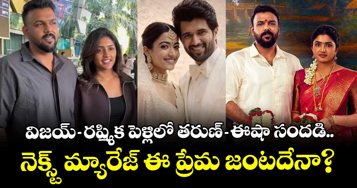 అయితే, ఇక్కడ ఇంట్రెస్టింగ్ విషయం ఏంటంటే.. రూమర్స్ లవర్స్గా వైరల్ అవుతున్న తరుణ్ భాస్కర్- హీరోయిన్ ఈషా రెబ్బా కలిసే వెళ్లారు. వీరిద్దరూ ఉదయ్ పూర్ ఎయిర్ పోర్ట్లో ల్యాండ్ అయిన ఫోటోలు సోషల్ మీడియాలో వైరల్గా మారాయి. ఈ క్రమంలో త్వరలో పెళ్లిపీటలెక్కబోయే “తరుణ్-ఈషా”.. ఇపుడు లవ్లీ కపుల్స్ విజయ్-రష్మీకల వివాహానికి విచ్చేసారు అంటూ నెటిజన్లు కామెంట్స్ చేస్తున్నారు.