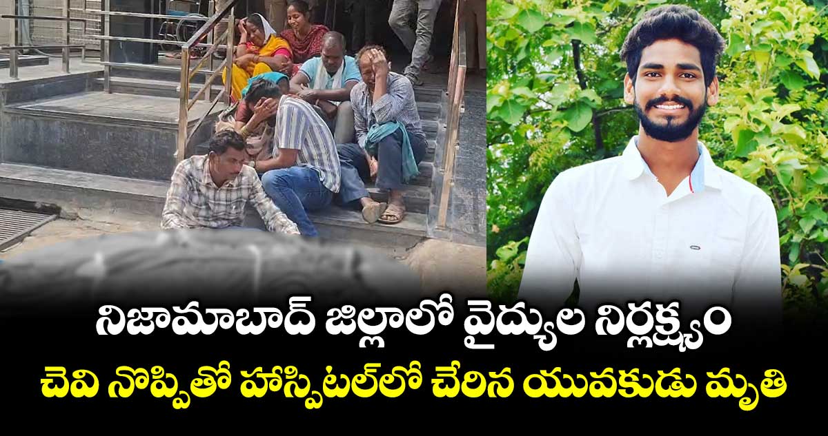 నిజమాబాద్ జిల్లాలో ఘోరం జరిగిపోయింది. చెవి నొప్పితో ఓ ప్రైవేట్ హాస్పిటల్లో చేరిన యువకుడు మృతి చెందటం తీవ్ర విషాదాన్ని నింపింది. చేతికొచ్చిన కొడుకు అర్ధంతరంగా చనిపోవడంతో కుటుంబ సభ్యులు ఆసుపత్రి ఎదుట ఆందోళనకు దిగారు. దీంతో హాస్పిటల్ పరిసరాల్లో ఉద్రిక్త వాతావరణం ఏర్పడింది.