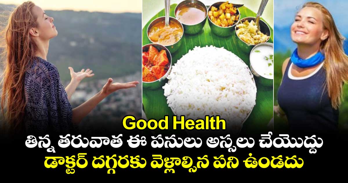 ప్రతి మనిషికి ఆరోగ్యం చాలా అవసరం. పూర్వ కాలంలో డబ్బు లేకపోయినా ఆరోగ్యంగా ఉంటే చాలనుకొనేవారు. అందుకే ఆరోగ్యమే మహాభాగ్యం అన్నారు. ప్రతి ఒక్కరు ఆహార విషయాల్లో కొన్ని నియమాలు పాటించాలి. ఏది ఎప్పుడు తినాలి అనే విషయంలో కూడా జాగ్రత్తలు పాటించాలి. ముఖ్యంగా ఆరోగ్యాన్ని కాపాడు కోవాలంటే తిన్న తరువాత కొన్ని నియమాలు పాటించాలని ఆరోగ్య నిపుణులు చెబుతున్నారు. ఇప్పుడు వాటి గురించి తెలుసుకుందాం . . !