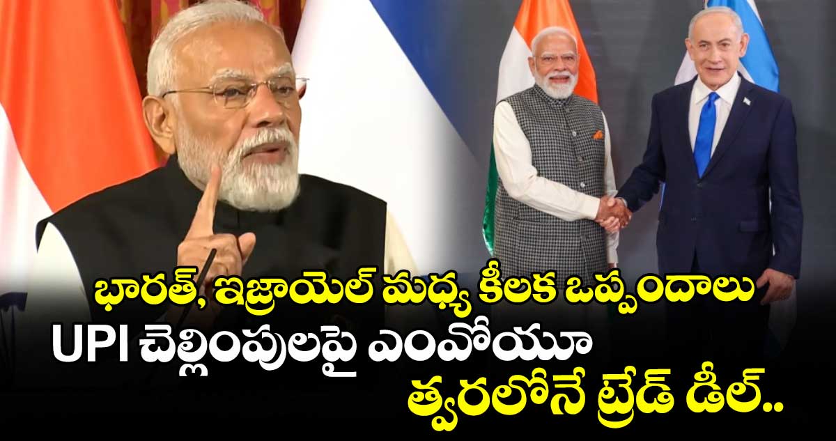 పీఎం మోడీ ఇజ్రాయెల్ టూర్ ముగిసింది. భారత్, ఇజ్రాయెల్ మధ్య కీలక ఒప్పందాలకు ఈ టూర్ వేదికయ్యింది.ఇరు దేశాల ప్రధానుల సమక్షంలో కీలక ఒప్పందాలు కుదిరినట్లు సమాచారం. UPI చెల్లింపులు, AI, సైబర్ భద్రత, రక్షణ, అంతరిక్ష, జల నిర్వహణ వంటి కీలక రంగాల్లో సహకారాన్ని మరింత విస్తరించేందుకు ఇరు దేశాలు అంగీకరించినట్లు ప్రకటించారు. గురువారం ( ఫిబ్రవరి 26 ) జెరూసలేంలో ఇజ్రాయెల్ ప్రధాని నెతన్యాహుతో కీలక చర్చల్లో పాల్గొన్నారు ప్రధాని మోడీ. అనంతరం ఇరు దేశాల ప్రధానులు సంయుక్త మీడియా సమావేశంలో ప్రసంగించారు.