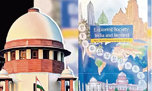 న్యాయవ్యవస్థకు కళంకాన్ని ఆపాదించే అవమానకరమైన అధ్యాయాన్ని ప్ర వేశ పెట్టినందుకు బాధ్యులపై ఎందుకు తగిన చర్య తీసుకోకూడదో వివరించాలని సుప్రీంకో ర్టు ప్రధాన న్యాయమూర్తి సూర్యకాంత్ నేతృత్వంలోని ధర్మాసనం కేంద్రాన్ని నిలదీసింది. ఎన్సిఇఆర్టి డైరెక్టర్, పాఠశాల విద్యాశాఖ కార్యదర్శికి షోకాజ్ నోటీసులు జారీ చేసింది. ముందు జాగ్రత్త చర్యగా, ఎక్స్ ప్లోరింగ్ సొసైటీ- ఇండియా అండ్ బియాండ్ (వాల్యూమ్ 2) అనే పుస్తకం తదుపరి ప్రచురణ, పునర్ముద్రణ లేదా డిజిటల్ వ్యాప్తిపై పూర్తి నిషేధం విధిస్తున్నట్లు సిజేఐ, జస్టిస్ జోయ్ మల్య బాగ్చి, విపుల్ ఎం. పంచోలిలతో కూడిన ధర్మాసనం పేర్కొంది. ఎలక్ట్రానిక్ మాధ్యమం, లేదా కంటెంట్ ఉన్న ప్రత్యామ్నాయ శీర్షికల ద్వారా తమ ఆదేశాన్ని తప్పించుకునే ఎలాంటి ప్రయత్నం చేసినా, ఉద్దేశపూర్వకంగా ఉల్లంఘించినా, సుప్రీం ఆదేశాలను ధిక్కరించినట్లే పరిగణిస్తామని ధర్మాసనం స్పష్టం చేసింది. పాఠశాల పుస్తకంలో ఇటువంటి అంశాలు చేర్చడానికి బాధ్యులు ఎవరో కనుక్కోవడం సుప్రీంకోర్టు అధిపతిగా నా విధి అన్ని సిజేఐ అన్నారు. ఈ అంశంలో లొతైన దర్యాప్తు జరపాలని కోరుతున్నట్లు తెలిపారు. సాంఘికశాస్త్రం పాఠ్యపుస్తకంలో ఈ అధ్యాయం ప్రచురించిన విషయాన్ని ఒక వార్తాపత్రికలో ప్రత్యేక కథనం ప్రచురించినప్పుడు తాము షాక్ తిన్నామని ధర్మాసనం పేర్కొంది.