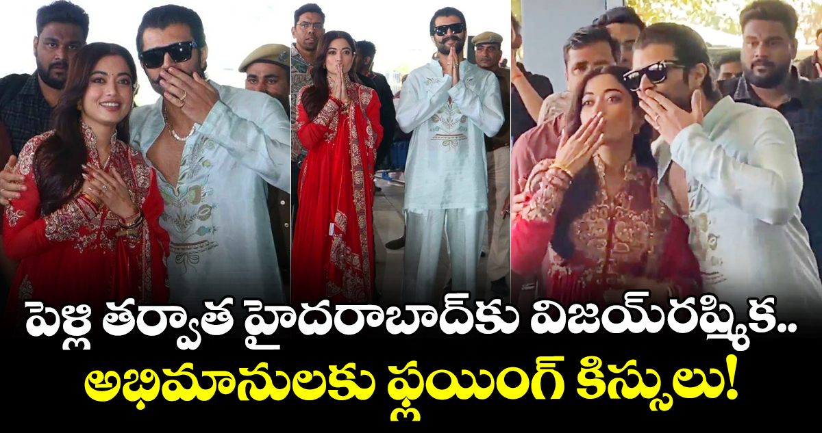 పెళ్లికి ముందు వరకు తమ ప్రయాణాలను అత్యంత రహస్యంగా ఉంచిన ఈ జంట, ఇప్పుడు భార్యాభర్తలుగా ఒకరి చేయి మరొకరు పట్టుకుని గర్వంగా నడుచుకుంటూ వచ్చారు. ఎరుపు రంగు వైబ్రెంట్ చురీదార్ సెట్లో రష్మిక మందన్న అచ్చం ‘కన్నడ కస్తూరి’లా మెరిసిపోతుండగా.. పౌడర్ బ్లూ కలర్ శాటిన్ కుర్తా-పైజామాలో విజయ్ దేవరకొండ ఎంతో హుందాగా కనిపించారు. ఎయిర్పోర్ట్ వద్ద వేచి ఉన్న ఫోటోగ్రాఫర్లను చూడగానే రష్మిక తనదైన శైలిలో చిరునవ్వు చిందిస్తూ, ఫ్లయింగ్ కిస్సులు ఇస్తూ సందడి చేశారు. విజయ్ కూడా చాలా కూల్గా కెమెరాలకు అభివాదం చేస్తూ అందరికీ కృతజ్ఞతలు తెలిపారు. గత ఎనిమిదేళ్లుగా ప్రేమలో ఉన్న ఈ జంట, పెళ్లి తర్వాత ఇలా జంటగా కనిపించడంతో అభిమానుల ఆనందానికి అవధులు లేకుండా పోయాయి.