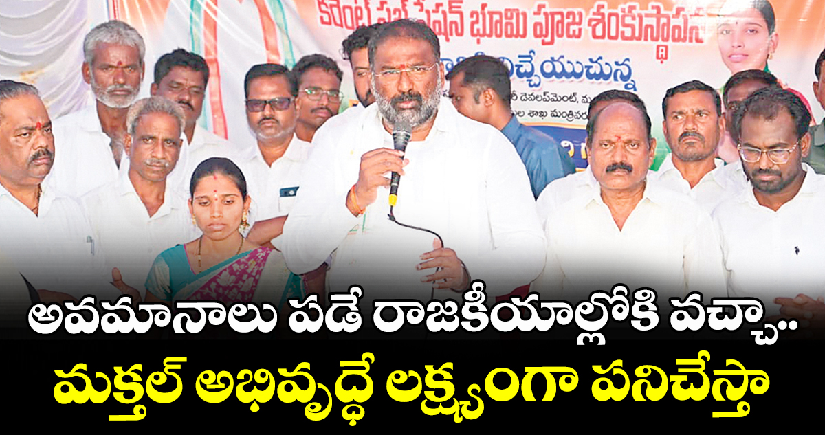 మక్తల్, వెలుగు : ఎన్నో అవమానాలను భరించి రాజకీయాల్లోకి వచ్చానని, మక్తల్ నియోజకవర్గ అభివృద్ధే లక్ష్యంగా పని చేస్తానని రాష్ట్ర పశుసంవర్ధక శాఖ మంత్రి వాకిటి శ్రీహరి అన్నారు. శుక్రవారం మాగనూర్ మండలం వడ్వాట్, ఊట్కూర్ మండలం పులిమామిడి గ్రామాల్లో రూ. 2.90 కోట్లతో నిర్మించనున్న 33/11 కేవీ నూతన విద్యుత్ సబ్ స్టేషన్ల నిర్మాణానికి భూమి పూజ చేశారు. అనంతరం గురురావు లింగంపల్లిలో అంగన్వాడీ భవన నిర్మాణానికి కూడా శంకుస్థాపన చేశారు. ఈ సందర్భంగా ఏర్పాటు చేసిన సభలో మంత్రి మాట్లాడుతూ గత 72 ఏండ్లలో 14 మంది ఎమ్మెల్యేలు ఈ ప్రాంతానికి కేవలం రూ. 296 కోట్లు మాత్రమే తీసుకువస్తే, తాను ఎమ్మెల్యేగా గెలిచిన ఈ రెండేండ్లలోనే రూ. 1035 కోట్ల అభివృద్ధి పనులను మంజూరు చేయించి రికార్డు సృష్టించానని తెలిపారు. ప్రతిపక్షాలు తనపై ఎన్ని అభాండాలు వేసినా, తప్పుడు ప్రచారాలు చేసినా మక్తల్ మున్సిపల్ ఎన్నికల్లో ప్రజలు ఇచ్చిన తీర్పుతో వారందరికీ తగిన బుద్ధి వచ్చిందని పేర్కొన్నారు. అభివృద్ధిని అడ్డుకునే శక్తులను దాటుకొని ముందుకు వెళ్తున్నామని, తనను చంపేందుకు కుట్రలు చేసినా భయపడే ప్రసక్తే లేదని మంత్రి స్పష్టం చేశారు.