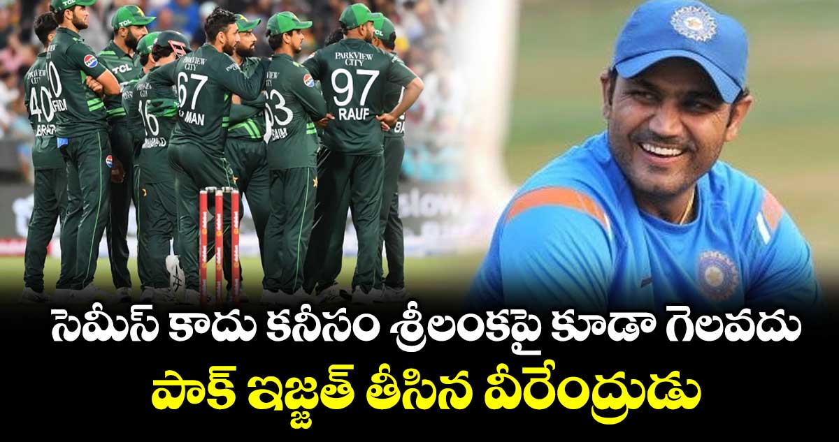 T20 World Cup 2026 : టీ20 వరల్డ్ కప్ 2026 సూపర్–-8లో భాగంగా ఈరోజు పల్లెకెలె వేదికగా పాకిస్థాన్, శ్రీలంక జట్ల మధ్య మ్యాచ్ జరుగుతుంది. ఈ మ్యాచ్లో భారీ తేడాతో గెలిస్తే పాకిస్థాన్ సెమీఫైనల్ కు చేరుకునే ఛాన్స్ ఉంది. లేదంటే న్యూజిలాండ్ సెమీస్లోకి ప్రవేశిస్తుంది. కాగా ఎట్టి పరిస్థితుల్లోనూ పాక్ సెమీస్ కి చేరుకోదని టీమిండియా మాజీ క్రికెటర్, డాషింగ్ ఓపెనర్ వీరేంద్ర సెహ్వాగ్ జోస్యం చెప్పుకొచ్చాడు. లంకతో మ్యాచ్లో పాక్ టీమ్ తొలుత బ్యాటింగ్ చేస్తే 64 రన్స్ తేడాతో, అదే టార్గెట్ ఛేదించాల్సి వస్తే.. 13.2 ఓవర్లలోనే ఉంటుంది అన్నారు. అప్పుడే కివీస్ కంటే మెరుగైన నెట్ రన్ రేటును ఆ జట్టు సొంతం చేసుకుని సెమీస్లోకి వెళ్తుందని.. కానీ పాక్ ఇలా గెలవడం కష్టమని వెల్లడించాడు.