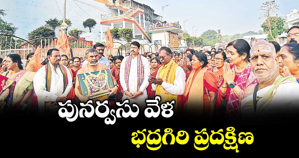 భద్రాచలం,వెలుగు: శ్రీరాముడి జన్మనక్షత్రం పునర్వసు సందర్భంగా శనివారం భద్రగిరి ప్రదక్షిణ భక్తి ప్రవత్తులతో నిర్వహించారు. ఆలయ ఈవో దామోదర్రావు ఆధ్వర్యంలో భక్తులు శ్రీరాముడి ఫొటోతో మూడుసార్లు భద్రగిరి చుట్టూ ప్రదక్షిణ నిర్వహించారు. రామపాదుకలకు భద్రుడి మండపంలో పంచామృతాలతో అభిషేకం చేసి, మూలవరులకు గర్భగుడిలో బంగారు తులసీ దళాలతో అర్చన చేశారు. సీతారాముల కల్యాణమూర్తులకు బేడా మండపంలో నిత్య కల్యాణం చేసి భక్తులకు ప్రసాదాలు పంపిణీ చేశారు. సాయంత్రం దర్బారు చేసి సీతారామయ్యకు దివిటీ సలాం ఇచ్చారు. హైదరాబాదుకు చెందిన డా.కవిత ఆలయానికి రూ.1,59,300 విలువైన మూడు కంప్యూటర్లను విరాళంగా ఈవోకు అందజేశారు.