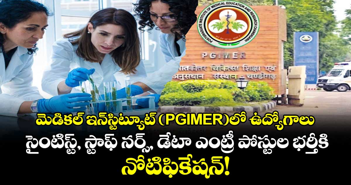 పోస్ట్ గ్రాడ్యుయేట్ ఇన్స్టిట్యూట్ ఆఫ్ మెడికల్ ఎడ్యుకేషన్ అండ్ రీసెర్చ్ (PGIMER) వివిధ విభాగాల్లో ఖాళీగా ఉన్న ప్రాజెక్ట్ రీసెర్చ్ సైంటిస్ట్, స్టాఫ్ నర్స్, డేటా ఎంట్రీ ఆపరేటర్ పోస్టుల భర్తీకి దరఖాస్తులను ఆహ్వానిస్తోంది.