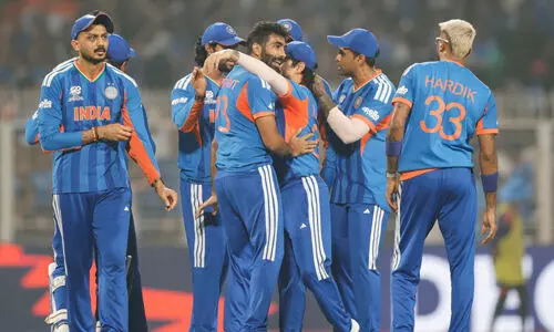 కోల్ కతా: టి20 వరల్డ్ కప్ లో భాగంగా సూపర్ 8లో భాగంగా భారత్- వెస్టిండీస్ మధ్య జరిగిన మ్యాచ్ లో విండీస్ 20 ఓవర్లలో నాలుగు వికెట్లు కోల్పోయి 195 పరుగులు చేసింది. భారత మందు 196 పరుగుల లక్ష్యాన్ని ఉంచింది. విండీస్ బ్యాట్స్ మెన్లు రోస్టన్ చేజ్(40), రోవన్ పావెల్(34 నాటౌట్), జెసన్ హోల్డర్(37 నాటౌట్), సాయి హోప్(32), సిమ్రాన్ హెట్ మెయిర్ (27) పరుగులు చేసి ఆలౌటయ్యారు. షెర్ఫన్ రూథర్ పోర్డు (14) పరుగులు చేసి ఔటయ్యారు. ప్రస్తుతం క్రీజులో రోవన్ పావెల్(03), రోమారియో జెషన్ హోల్డర్ (6) పరుగులతో బ్యాటింగ్ చేస్తున్నారు. భారత బౌలర్లలో జస్ప్రీత్ బుమ్రా రెండు వికెట్లు, వరుణ్ చక్రవర్తి, హార్ధిక్ పాండ్యా చెరో ఒక వికెట్ తీశారు.