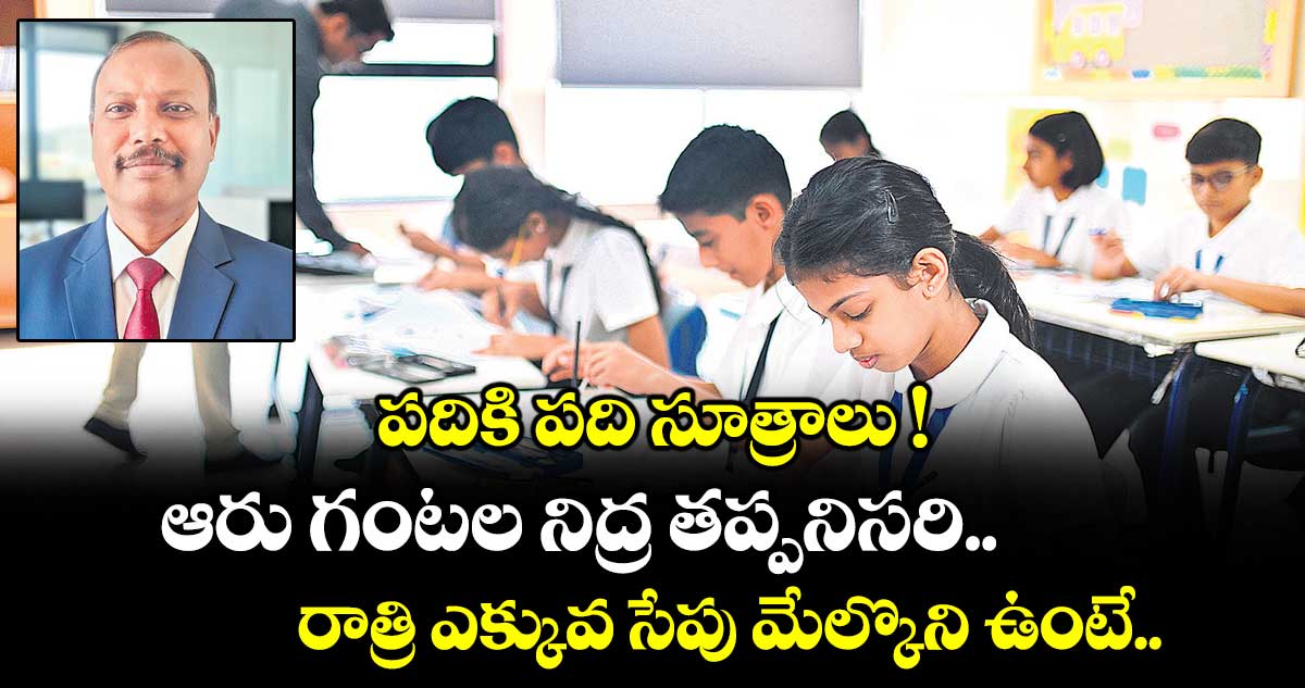ప్రతి విద్యార్థికి ఆరు గంటల నిద్ర తప్పనిసరి. కొంతమంది స్టూడెంట్స్ పరీక్షల సమయంలో రాత్రంతా చదివి ఆరోగ్యాన్ని పాడుచేసుకుంటారు. రాత్రి ఎక్కువ సేపు మేల్కొని ఉంటే ఆ ప్రభావం పరీక్షపై పడి సరిగ్గా రాయలేకపోతారు. అందుకే సరైన టైంకి పడుకుని, ఉదయాన్నే లేచే అలవాటు చేసుకోవాలి. కొంతమందికి రాత్రి చదివితే బాగా అబ్బుతుంది. కొంతమందికి ఉదయం చదివితే బాగా జ్ఞాపకం ఉంటుందంటారు. వారి వారి ఇష్ట ప్రకారం చదువుకోవచ్చు.