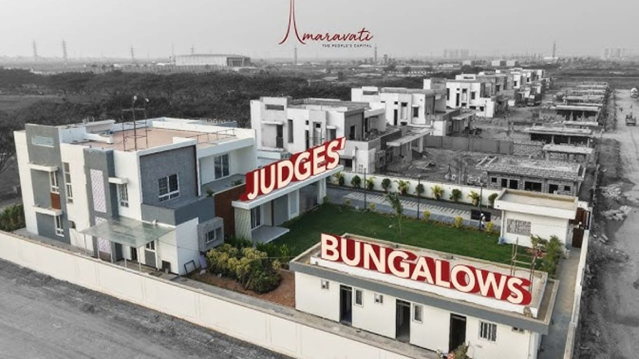 అమరావతి, మార్చి 2: అమరావతి రాజధాని ప్రాంతంలోని గవర్నమెంట్ కాంప్లెక్స్ లోని సూపర్ బ్లాక్ కె ఎఫ్ ప్రాంతంలో ఈ జస్టిస్ బంగ్లాను నిర్మించారు. ప్రతి బంగ్లా దాదాపు 2019 గజాల విస్తీర్ణలో మొత్తం 775 చదరపు అడుగుల నిర్మాణంతో విస్తృతంగా రూపొందించారు. అన్ని బంగ్లాలు ఒకే వరుసలో చక్కని ప్రణాళికతో నిర్మించారు. అయితే ఇటీవలే భారత ప్రధాన న్యాయమూర్తి చేతుల మీదుగా ప్రారంభోత్సవం జరిగింది. న్యాయమూర్తుల హోదాకు తగినట్టుగా ఈ నివాసాల్లో అన్ని అవసరమైన సౌకర్యాలు ఏర్పాటు చేశారు. ప్రతి బంగ్లాను గ్రౌండ్ ఫ్లోర్, ఫస్ట్ ఫ్లోర్ గా నిర్మించారు. విశాలమైన హాల్, బెడ్ రూమ్స్ నూతన టెక్నాలజీ వసతులతో ఈ బిల్డింగులు సిద్ధమయ్యాయి.