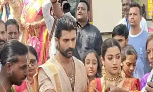 నాగర్కర్నూల్ జిల్లా బల్మూరు మండలం తుమ్మన్పేట గ్రామంలో సోమవారం అరుదైన ఆనంద క్షణాలు ఆవిషృ్కతమయ్యాయి. నూతన దంపతులు విజయ్ దేవరకొండ, రష్మిక మందన తమ స్వగ్రామాన్ని సందర్శించడంతో గ్రామమంతా పండుగ వాతావరణంలో మునిగింది. గ్రామ ప్రవేశ ద్వారం వద్ద తెల్లవారుజామున నుంచే అభిమానులు, గ్రామస్తులు భారీగా గుమిగూడి పూలమాలలు, హర్షధ్వానాలు, తాళపత్రాలతో స్వాగత ఏర్పాట్లు చేశారు. డప్పు వాయిద్యాలు, కోలాటాల నృత్యాల మధ్య జంటకు అట్టహాసంగా ఆహ్వానం పలికారు. చిన్నారుల నుంచి వృద్ధుల వరకు ప్రతి ఒక్కరూ తమ గ్రామానికి గర్వకారణమైన విజయ్ను, ఆయన సతీమణి రష్మికను ఒక్కసారి చూడాలని ఆసక్తిగా తరలివచ్చారు. యువతీ యువకులు మొబైల్ ఫోన్లలో ఫోటోలు, వీడియోలు తీసుకుంటూ ఆనందాన్ని పంచుకున్నారు. మహిళలు మంగళహారతులు పట్టి సాంప్రదాయబద్ధంగా ఆహ్వానించారు. గ్రామ వీధులు రంగవల్లులతో అలంకరించి పూలతోరణాలతో శోభాయమానంగా కనిపించాయి. ఉదయం 11:15 గంటలకు నూతన దంపతులు వేదమంత్రాల మధ్య తులసిమాతకు ప్రత్యేక పూజలు నిర్వహించారు.