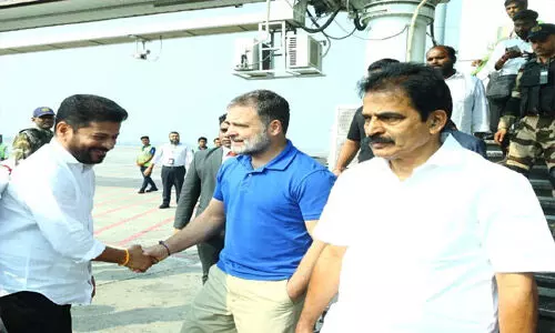 అనంతగిరిలో ఏర్పాటైన శిక్షణ శిబిరానికి విచ్చేసిన కాం గ్రెస్ అగ్ర నాయకులు రాహుల్ గాంధీకి ఎస్ఎపి కాలేజిలోని హెలిప్యాడ్ వద్ద నాయకులు ఘన స్వాగతం ఫలికారు. రాహుల్ గాంధీ వెంట రాష్ట్ర ముఖ్యమంత్రి రేవంత్ రెడ్డి ఉన్నారు. వారికి వికారాబాద్ నియోజకవర్గం ఎమ్మె ల్యే, అసెంబభ్లీ స్పీకర్ గడ్డం ప్రసాద్కుమార్, వికారాబాద్ మున్సిపల్ చైర్పర్సన్ గడ్డం అనన్య ఘనస్వాగతం పలికారు. ఈ కార్యక్రమంలో ఏఐసిసి ఇంచార్జి మీనాక్షి నటరాజన్, టి.పిసిసి అధ్యక్షుడు, ఎమ్మెల్సీ మహేష్ కుమార్ గౌడ్ , ఏపిసిసి అధ్యక్షురాలు వైఎస్ షర్మిల, ఏఐసిసి సెక్రటరీ సచిన్సావంత్ తదితరులు పాల్గొన్నారు. సోమవారం ఉదయం ఏయిర్ ఇండియా విమానంలో ఢిల్లీ నుంచి శం షాబాద్ విమానాశ్రయానికి చేరుకున్న రాహుల్కు ముఖ్యమంత్రి రేవంత్రెడ్డి తదితరులు స్వాగతం పలికారు. అక్కడి నుంచి వారు హెలికాప్టర్లో వికారాబాద్లో జరుగుతున్న శిక్షణా శిబిరానికి చేరుకున్నారు. శిబిరం ముగిసిన అనంతరం రాహులు గాంధీ హెలికాప్టర్లో శంషాబాద్ విమానాశ్రయానికి చేరుకోగా, అక్కడి నుంచి ఆయన ఏయిర్ ఇండియా విమానంలో ఢిల్లీ బయలుదేరి వెళ్ళారు.