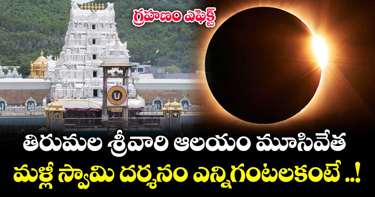 చంద్రగ్రహణ ప్రభావం కారణంగా తెలుగు రాష్ట్రాల్లోని దేవాలయాలను మూసివేస్తున్నారు. ఇప్పటికే ( వార్త రాసే సమయానికి) శ్రీశైలం ఆలయం మూసి వేయగా.. తిరుమల శ్రీవారి ఆలయాన్ని ఉదయం 9:00 గంటల నుండి రాత్రి 7:30 గంటల వరకు ఆలయం మూసి ఉంటుందని టీటీడీ అధికారులు తెలిపారు. ఈ రోజు ( మార్చి 3) మధ్యాహ్నం 3:20 గంటలకు ప్రారంభమైన చంద్రగ్రహణం … సాయంత్రం 6:47 గంటల వరకు ఉంటుంది.