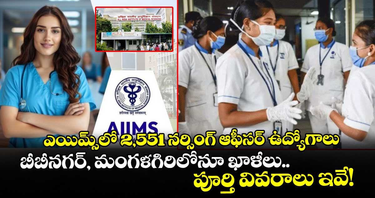 ఆల్ ఇండియా ఇన్స్టిట్యూట్ ఆఫ్ మెడికల్ సైన్సెస్ (ఎయిమ్స్) నర్సింగ్ ఆఫీసర్ పోస్టుల భర్తీకి నోటిఫికేషన్ విడుదల చేసింది. ఆసక్తి, అర్హత గల అభ్యర్థులు ఆన్లైన్లో అప్లై చేసుకోవచ్చు. అప్లికేషన్ సమర్పించడానికి చివరి తేదీ మార్చి 16.