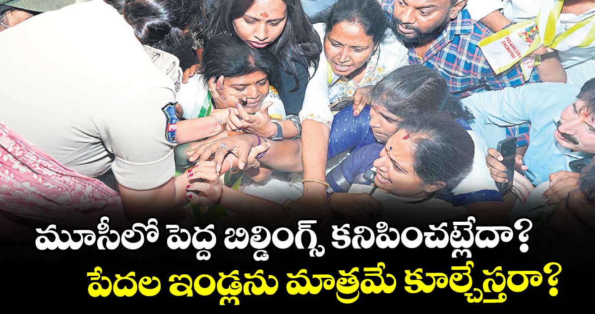 మూసీ మధ్యలో పెద్దవాళ్లు కడుతున్న బిల్డింగులను వదిలిపెట్టి పేదల బిల్డింగులు కూలగొడుతున్నారని, దానిని ప్రశ్నిస్తే అక్రమ అరెస్టులకు పాల్పడుతున్నారని కవిత అన్నారు. నార్సింగిలో ఆందోళన విరమించకపోవడంతో పోలీసులు కవిత సహా ఆందోళన చేస్తున్న వారిని అరెస్ట్ చేశారు. ఈ సందర్భంగా ఆమె మాట్లాడారు. “మూసీ రివర్ బెడ్ లో ఉన్న నిర్మాణాలపై చర్యలు తీసుకోవడం లేదు.. అదే వెలుగుమట్లలో పేదలు వేసుకున్న గుడిసెలను కూల్చేశారు.