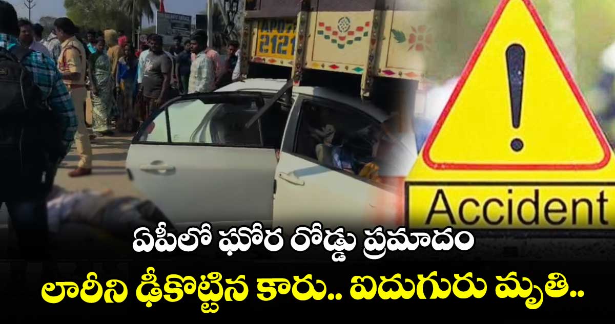 ఏపీలోని చిత్తూరులో ఘోర రోడ్డు ప్రమాదం జరిగింది. లారీని వెనక నుంచి కారు ఢీకొట్టడంతో ఐదుగురు అక్కడికక్కడే మృతి చెందారు. బుధవారం ( మార్చి 4 ) జరిగిన ఈ ఘటనకు సంబంధించి వివరాలిలా ఉన్నాయి.. చిత్తూరు జిల్లా పలమనేరు సమీపంలోని నేషనల్ హైవేపై ఘోర రోడ్డు ప్రమాదం చోటు చేసుకుంది. లారీని వెనక నుంచి కారు ఢీకొట్టడంతో ఐదుగురు అక్కడికక్కడే మృతి చెందారు. అతి వేగంగా వచ్చి లారీని ఢీకొట్టడంతో కారు పూర్తిగా ధ్వంసమయ్యింది.