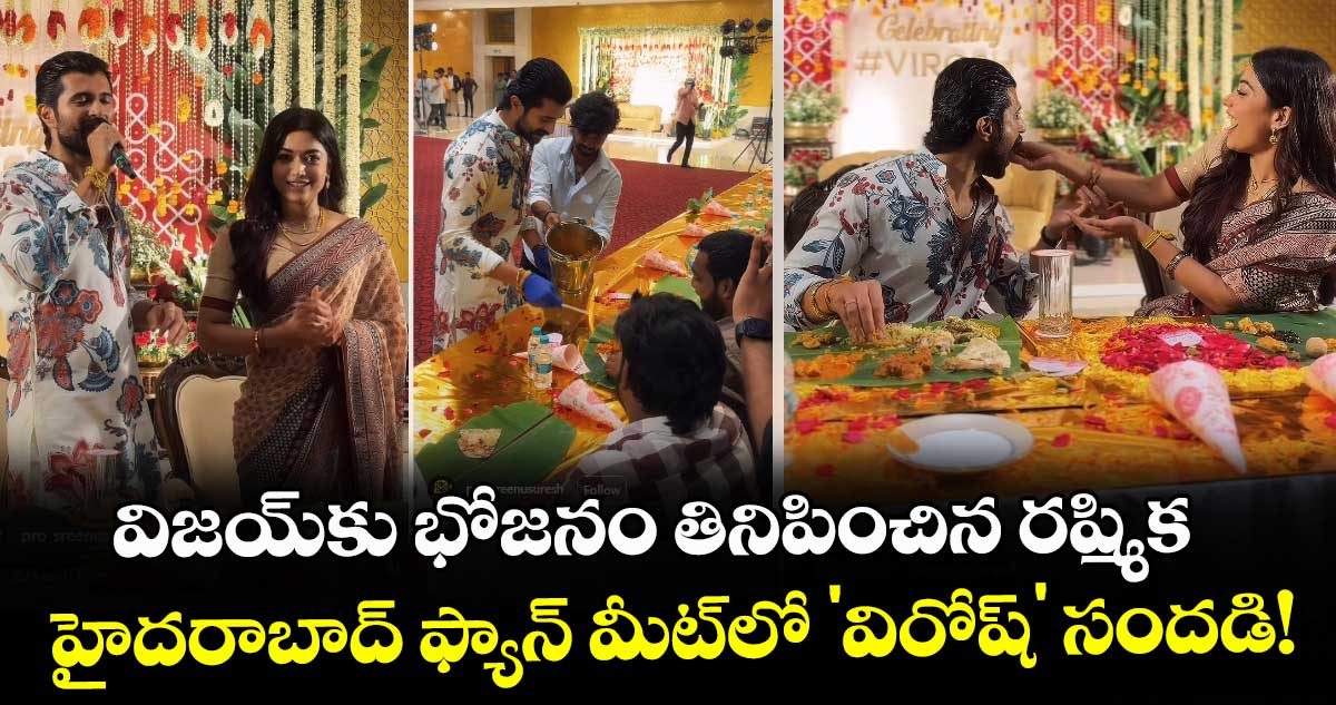 హైదరాబాద్లో గ్రాండ్ రిసెప్షన్ జరగడానికి ముందు, మంగళవారం,ఫిబ్రవరి 3న విజయ్-రష్మిక ఒక ప్రత్యేకమైన ఫ్యాన్ మీట్-అప్ ఏర్పాటు చేశారు. ప్రేమతో మీ #VIROSH” అనే బోర్డుతో అభిమానులకు ఘనస్వాగతం పలికారు. స్టార్ హోదాను పక్కన పెట్టి, తాము స్వయంగా అభిమానులకు భోజనాలు వడ్డించారు. అభిమానులతో భోజనం చేస్తూ.. రష్మిక తన చేతులతో విజయ్కు ముద్దలు తినిపించారు. ప్రస్తుతం ఈ వీడియోలు సోషల్ మీడియాలో వైరల్ అవుతున్నాయి.