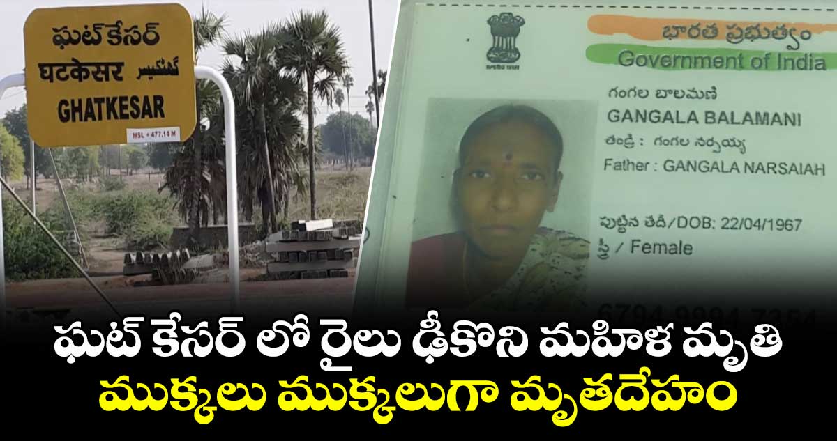 మేడ్చల్ జిల్లా ఘట్కేసర్ రైల్వే స్టేషన్ సమీపంలో ఘోర ప్రమాదం జరిగింది. రైల్వే గేటు దాటుతుండగా రైలు ఢీకొని బాలమణి (58) అనే మహిళ అక్కడికక్కడికే మృతి. చెందింది. రైలు ఢీకొనడంతో మహిళ ముక్కలు ముక్కలుగా దూరంలో పడిపోయింది.