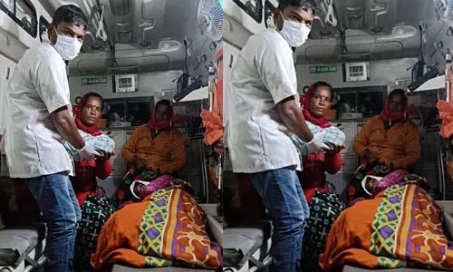 బాన్సువాడ ప్రభుత్వ ఆస్పత్రికి గర్బిణీని తీసుకొని వస్తుండగా మార్గమధ్యలో అంబులెన్స్లో మహిళ ప్రసవించినట్లు తల్లి, బిడ్డ క్షేమంగా ఉన్నారని వారిని బాన్సువాడ ప్రభుత్వ ఆస్పత్రికి తరలించినట్లు ఈఎంటీ లక్ష్మణ్ తెలిపారు. వివరాలలోకి వెళితే.. లింగంపేట మండలం రాంపల్లి గ్రామానికి చెందిన శైలజకు డెలివరీ కోసం మాత శిశు సంరక్షణ ఆస్పత్రి బాన్సువాడకు తీసుకుని వస్తుండగా తగిన పరీక్షలని నిర్వహించారు. ఈ క్రమంలో మహిళకు బిపి పెరిగింది. వైద్యులు అందుబాటులో లేకపోవడంతో బాన్సువాడ నుంచి కామారెడ్డి ప్రభుత్వ ఆస్పత్రికి తరలిస్తుండగా మార్గమధ్యలో అంబులెన్స్లో నొప్పులు ఎక్కువ కావడంతో ఈఎంటీ లక్ష్మణ్ డెలివరీ చేశాడు. ఆడ బిడ్డకు జన్మనివ్వగా, తల్లి బిడ్డ క్షేమంగా ఉన్నారు. ఈ సందర్బంగా కుటుంబ సభ్యులు ఈఎంటీ లక్ష్మణ్తో పాటు పైలట్ రాముకు కృతజ్ఞతలు తెలిపారు. తదుపరి చికిత్స కోసం కామారెడ్డి జిల్లా ఆస్పత్రికి తరలించడం జరిగింది.