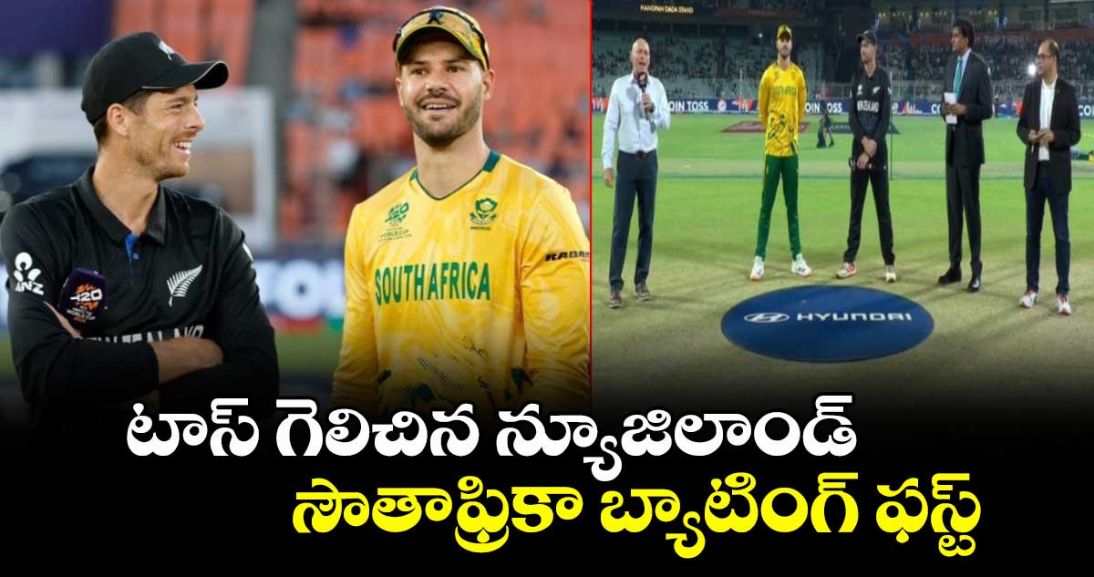 T20 World Cup: టీ20 వరల్డ్ కప్ లో భాగంగా కోల్కతాలోని ఈడెన్ గార్డెన్స్ వేదికగా జరుగుతున్న తొలి సెమీఫైనల్ మ్యాచ్లో న్యూజిలాండ్ వర్సెస్ సౌతాఫ్రికా జట్లు తలపడుతున్నాయి. ఈ మ్యాచ్లో టాస్ గెలిచిన కివీస్ ముందుగా బౌలింగ్ ఎంచుకుంది. దీంతో ఐడెన్ మార్క్రామ్ నేతృత్వంలోని సౌతాఫ్రికా జట్టు తొలుత బ్యాటింగ్కు దిగనుంది. టాస్ అనంతరం న్యూజిలాండ్ కెప్టెన్ మిచెల్ శాంట్నర్ మాట్లాడుతూ.. మేము ముందుగా బౌలింగ్ చేయాలనుకుంటున్నాం.. ఇక్కడి పిచ్ పరిస్థితులు బౌలింగ్కు సహకరిస్తాయని భావిస్తున్నాం.. సౌతాఫ్రికా బలమైన జట్టు, వారిని ఒత్తిడిలోకి నెట్టి విజయం సాధించడంపైనే మేము దృష్టి పెట్టాం.. జట్టులో రెండు మార్పులు చేశాం.. మాట్ హెన్రీ, నీషమ్ తిరిగి జట్టులోకి రావడం మాకు కలిసొచ్చే అంశమని శాంట్నర్ తెలిపారు.