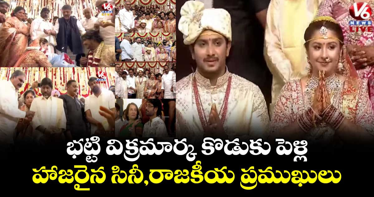 తెలంగాణ డిప్యూటీ సీఎం భట్టి విక్రమార్క కొడుకు సూర్యవిక్రమాదిత్య-సాక్షి వివాహం హైదరాబాద్ లో ఘనంగా జరిగింది. ఈ వివాహానికి పలువురు సినీ ,రాజకీయ ప్రముఖులు హాజరై నూతన వధూవరులను ఆశీర్వదించారు. తెలుగు రాష్ట్రాల నుంచి పలువురు ప్రముఖులు భారీగా తరలివచ్చారు.