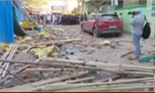 హైదరాబాద్: నగరంలోని టోలిచౌకీలో ఘోర ప్రమాదం చోటు చేసుకుంది. ఏడు అంతస్థుల భవన నిర్మాణంలో ప్రమాదం జరిగింది. ఈ ప్రమాదంలో నలుగురు మృతి చెందగా.. ఆరుగురికి తీవ్ర గాయాలయ్యాయి. ప్రమాద సమయంలో మొత్తం 10 మంది కార్మికులు పని చేస్తున్నట్లు సమాచారం. కార్మికులు ఐదో అంతస్థు నుంచి జారి పడినట్లు తెలుస్తోంది. గాయపడిన వారిని దగ్గర్లోని ఆస్పత్రికి తరలించి చికిత్స అందిస్తున్నారు. ప్లాస్టరింగ్ పని చేస్తూ.. కనీస జాగ్రత్తలు తీసుకోకపోవడమే ప్రమాదానికి కారణమని స్థానికులు చెబుతున్నారు. ఈ ఘటనకు సంబంధించి మరిన్ని వివరాలు తెలియాల్సి ఉంది.