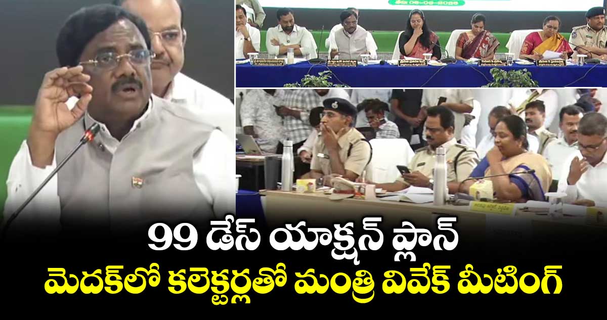 తెలంగాణ ప్రభుత్వం ప్రతిష్టాత్మకంగా చేపట్టిన ‘ప్రజా పాలన.. ప్రగతి ప్రణాళిక’ 99 రోజుల యాక్షన్ ప్లాన్ శుక్రవారం నుంచి ప్రారంభం అయ్యింది. తొలి ఉమ్మడి మెదక్ జిల్లా ప్రజాపాలన ప్రగతి ప్రణాళిక 99 రోజుల యాక్షన్ ప్లాన్ కార్యక్రమంలో భాగంగా మెదక్ కలెక్టరేట్ కార్యాలయంలో జిల్లా ఇంచార్జి మంత్రి వివేక్ వెంకటస్వామి సమావేశం నిర్వహించారు. ఎంపీ రఘనందనరావ్, ఏమ్మెల్యే మైనం పల్లి రోహిత్. ఎమ్మెల్యేసంజీవ్ రెడ్డి. ఎంపీసురేష్ శెట్కార్.ఎమ్మెల్సీ అంజిరెడ్డి, గ్రంధాలయ చైర్మన్ సుహాసిని రెడ్డి రెడ్డి, మెదక్ , సంగారెడ్డి ,సిద్దిపేట జిల్లాల కలెక్టర్లు ఉమ్మడి జిల్లా అధికారులు ఈ సమావేశంలో పాల్గొన్నారు.