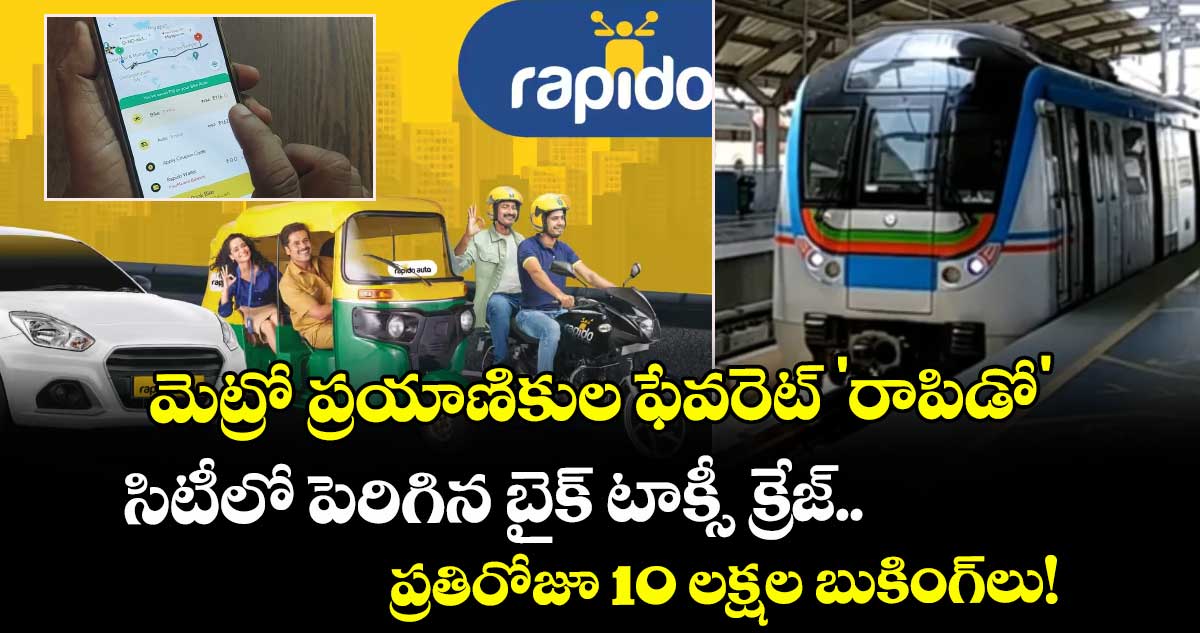 హైదరాబాద్లో ప్రయాణికులకు రాపిడో (Rapido) ప్రధాన రవాణా వనరుగా మారిపోయింది. మంగళవారం (మార్చి 3)న విడుదలైన డేటా ప్రకారం, హైదరాబాద్ సిటీలో రాపిడో ద్వారా ప్రతిరోజూ 10 లక్షలకు పైగా బుకింగ్స్ జరుగుతుండటం విశేషం. ముఖ్యంగా మెట్రో స్టేషన్లకు వెళ్లేందుకు లేదా స్టేషన్ల నుండి ఇంటికి చేరుకునేందుకు రాపిడోను జనం ఎక్కువగా వాడుతున్నారు. ఇలా మెట్రోతో కనెక్టై ఉన్న రైడ్లే రోజుకు 1.5 లక్షలకు పైగా బుక్ అవుతున్నాయి.