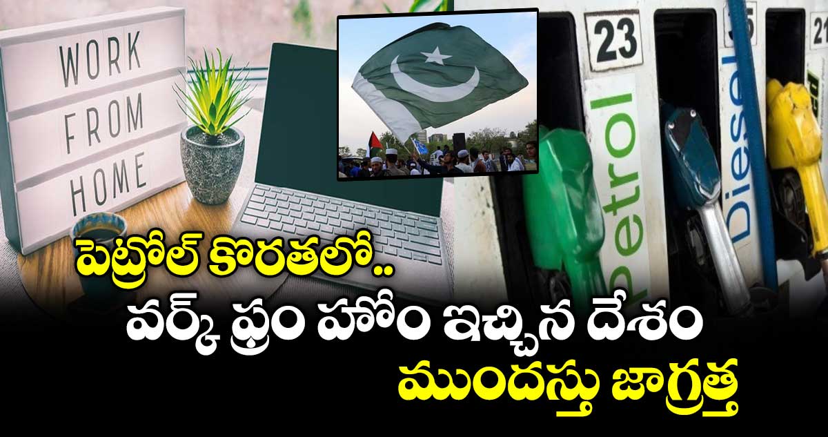 అమెరికా, ఇరాన్ యుద్ధం భీకరంగా సాగుతుంది. ఈ ప్రభావం వాళ్ల దేశాలపైనే కాదు.. ప్రపంచం మొత్తం ఎఫెక్ట్ అవుతుంది. ఇప్పుడిప్పుడే దీని ప్రభావం ఆసియా ఖండానికి తాకింది. పెట్రోల్, డీజిల్ కొరత ఆయా దేశాల్లో సంక్షోభాన్ని తీసుకొస్తుంది. ఈ క్రమంలోనే ముందస్తు జాగ్రత్తకు దిగాయి కొన్ని దేశాలు. అందులో పాకిస్తాన్ ఫస్ట్ లో ఉంది. ప్రస్తుతం పాకిస్తాన్ దేశంలో నిల్వ ఉన్న పెట్రోల్, డీజిల్.. జస్ట్ 26 రోజులకు మాత్రమే వస్తుంది.. ఆ తర్వాత పరిస్థితి ఏంటీ.. దేశం ఆగిపోతుంది కదా.. అందుకే ముందు జాగ్రత్తగా వర్క్ ఫ్రం హోం ప్రకటించింది పాకిస్తాన్ దేశం. ఇంట్లో ఉండి పనులు చేసుకోండి.. ఆఫీసులకు రావొద్దు.. అనవసరంగా బయట తిరగొద్దు అని ఆదేశాలు జారీ చేసింది పాకిస్తాన్ దేశం.