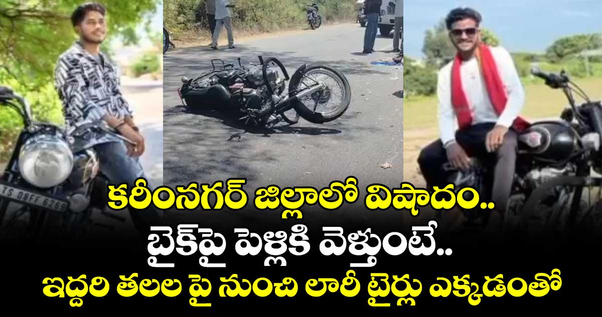 కరీంనగర్ జిల్లా చొప్పదండి మండలం చాకుంట X రోడ్డుపై బైక్పై వెళుతున్న ఇద్దరు యువకులను లారీ వెనుక నుంచి వేగంగా ఢీ కొట్టింది. ఈ ప్రమాదంలో బైక్పై వెళుతున్న ఇద్దరూ అక్కడికక్కడే చనిపోయారు. స్థానికులు, పోలీసులు వెల్లడించిన వివరాల ప్రకారం.. చొప్పదండి మండలం రుక్మాపూర్కు చెందిన తాటికొండ సాయికిరణ్(23), చిలుక ప్రదీప్(23) ఇద్దరూ చాకుంటలో జరుగుతున్న వివాహానికి రుక్మాపూర్ గ్రామం నుంచి బైక్పై వెళ్లుతున్నారు.