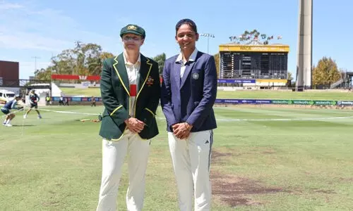 పెర్త్: ఆస్ట్రేలియా పర్యటనలో ఉన్న టీం ఇండియా మహిళ జట్టు టి-20 సిరీస్ని కైవసం చేసుకుంది.. కానీ, వన్డే సిరీస్ని కోల్పోయింది. ఇప్పుడు ఆతిథ్య జట్టుతో ఏకైక టెస్ట్ మ్యాచ్లో తలపడుతోంది. ఈ మ్యాచ్లో ఆస్ట్రేలియా మహిళ జట్టు టాస్ గెలిచి బౌలింగ్ ఎంచుకుంది. దీంతో తొలుత బ్యాటింగ్కి దిగిన హర్మన్ప్రీత్ సేన పెద్దగా రాణించలేకపోయింది. ఆస్ట్రేలియా బౌలర్ల ధాటికి భారత బ్యాటర్లు భారీ స్కోర్ సాధించలేకపోయారు. దీంతో 62.4 ఓవర్లలో 198 పరుగులకే భారత్ ఆలౌట్ అయింది. భారత బ్యాటింగ్లో జెమీమా (52) అర్థ శతకంతో రాణించగా.. షెఫాలీ వర్మ 35, కశ్వీ గౌతమ్ 34 పరుగులు చేశారు. ఆస్ట్రేలియా బౌలింగ్లో అన్నాబెల్ సదర్లాండ్ 4, లూసీ హామిల్టన్ 3, డార్సీ బ్రౌన్ 2, అష్లే గార్డ్నర్ 1 వికెట్ తీశారు. ప్రస్తుతం తొలి ఇన్నింగ్స్ ప్రారంభించిన ఆసీస్ జట్టు 7 ఓవర్లు ముగిసేసరికి 1 వికెట్ నష్టానికి 17 పరుగులు చేసి.. 181 పరుగుల వెనుకంజలో ఉంది. క్రీజ్లో లిచ్ఫీల్డ్(2), పెర్రీ (11) ఉన్నారు.