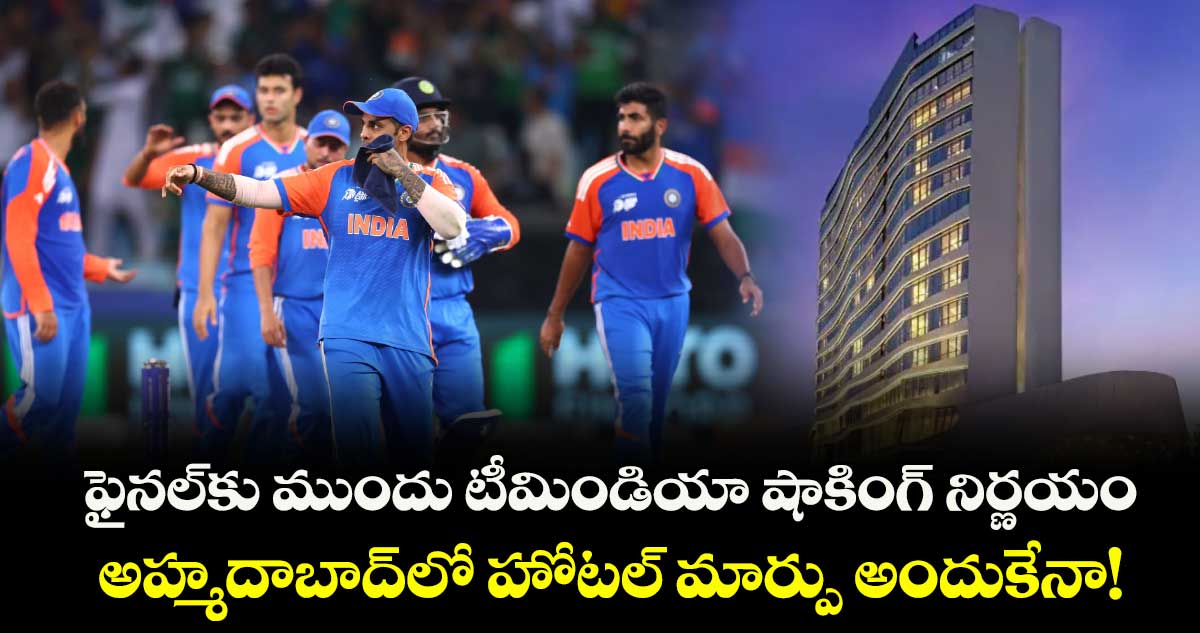 T20 World Cup Final: టీ20 ప్రపంచకప్ ఫైనల్ మ్యాచ్ రేపు ( మార్చి 8న) అహ్మదాబాద్ లోని నరేంద్ర మోడీ స్టేడియం వేదికగా భారత్ వర్సెస్ న్యూజిలాండ్ మధ్య జరగనుంది. దీంతో ఇండియన్ టీమ్ బస చేసే హోటల్ ని భారత క్రికెట్ నియంత్రణ మండలి (BCCI) చివరి నిమిషంలో మార్చినట్లుగా ప్రచారం జరుగుతుంది. దీనిపై అధికారిక సమాచారం మాత్రం ఇప్పటి వరకు ప్రకటించలేదు. హోటల్ మార్పుకు గల కారణాలను కూడా వెల్లడించకపోయినప్పటికీ.. అహ్మదాబాద్లో అదే హోటల్లో బస చేసిన్నప్పుడు భారత్కు చేదు అనుభవాలు ఎదురయ్యాయి. ముఖ్యంగా 2023 వరల్డ్ కప్ ఫైనల్ సమయంలో భారత్ ఓటమి చవిచూసింది.. అలాగే ఈ టోర్నమెంట్లో సూపర్-–8 దశలో సౌతాఫ్రికాతో జరిగిన మ్యాచ్లో కూడా టీమిండియా ఓడిపోవడం వలనే.. ఫైనల్కు ముందు హోటల్ ని మార్చినట్లు సమాచారం.