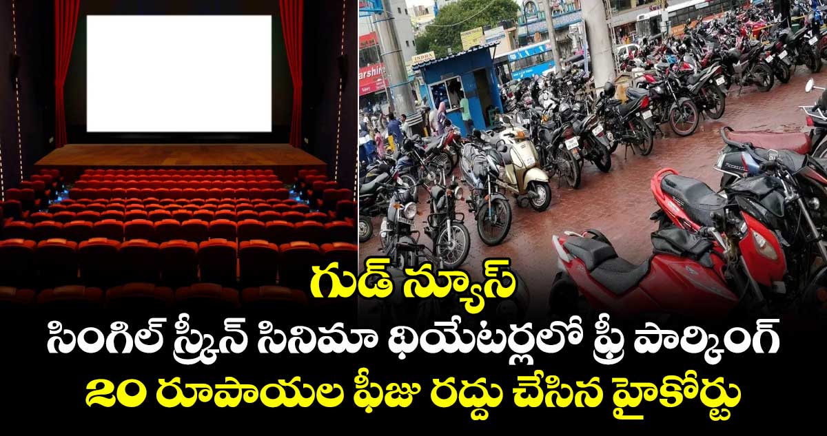 హైదరాబాద్: సినీ ప్రియులకు హైకోర్టు గుడ్ న్యూస్ చెప్పింది. సింగిల్ స్క్రీన్ థియేటర్లలో పార్కింగ్ ఫీజును రద్దు చేసింది. ఈ మేరకు గతంలో ప్రభుత్వం జారీ చేసిన జీవో నెంబర్ 121ను హైకోర్టు సస్పెండ్ చేసింది. మల్టీప్లెక్స్ల మాదిరిగానే సింగిల్ స్క్రీన్ థియేటర్లలో కూడా ప్రేక్షకులకు ఉచిత పార్కింగ్ సదుపాయం కల్పించాలని ఆదేశించింది. దీంతో ఇకపై థియేటర్కు వెళ్లి సినిమా చూడాలనుకునే వారు రూ.20 పార్కింగ్ ఫీజు చెల్లించాల్సిన అవసరం లేదు.