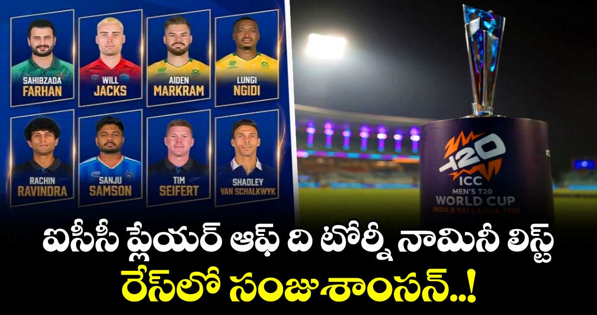 ఐసీసీ 2026 టీ20 వరల్డ్ కప్ ప్లేయర్ ఆఫ్ ది టోర్నమెంట్ నామినేషన్లను ప్రకటించింది. నెలపాటు ఫ్యాన్స్కు ఫుల్ కిక్ ఇచ్చిన టీ 20 వరల్డ్ కప్లో ఒక్క మ్యాచ్ మాత్రమే మిగిలి ఉంది. ఆదివారం ఇండియా, న్యూజిలాండ్ జట్ల మధ్య జరగబోయే ఫైనల్ మ్యాచ్తో ఈ టోర్నీకి ఎండ్ కార్డు పడుతుంది. వరల్డ్ కప్ ఫైనల్కు ముందు ఐసీసీ.. ప్లేయర్ ఆఫ్ ది టోర్నమెంట్ కోసం ఎనిమిది మంది ఆటగాళ్లను షార్ట్లిస్ట్ చేసింది. ఈ లిస్ట్లో ఇండియన్ ప్లేయర్ సంజు శాంసన్ స్థానం దక్కించుకోగా.. ఆశ్చర్యకరంగా జస్ప్రీత్ బుమ్రాకు అవకాశం దక్కలేదు. ప్లేయర్ ఆఫ్ ది టోర్నమెంట్ కోసం ఎంపికైన 8 మంది ప్లేయర్లు ఎవరో ఇప్పుడు చూద్దాం..