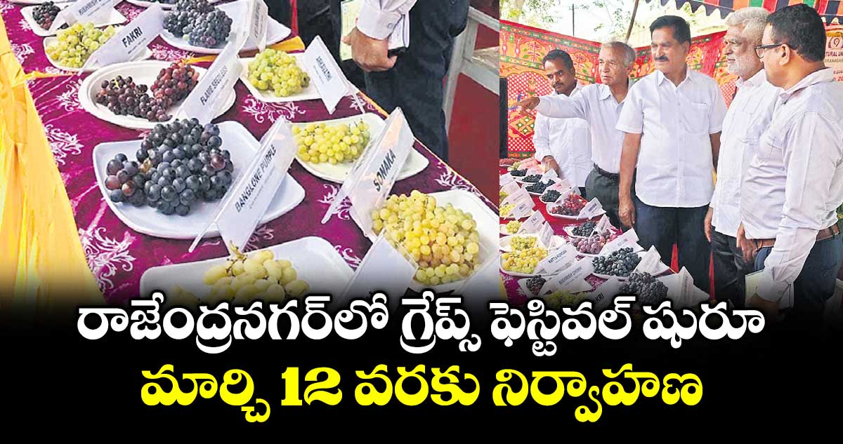 గండిపేట, వెలుగు: రాజేంద్రనగర్లోని కొండా లక్ష్మణ్ ఉద్యాన వర్సిటీలోని గ్రేప్ రిసర్చ్ స్టేషన్లో శనివారం గ్రేప్స్ ఫెస్టివల్ ఘనంగా ప్రారంభమైంది. ప్రజా పాలన–ప్రగతి ప్రణాళికలో భాగంగా మార్చి 12వ తేదీ వరకు ఈ వేడుకలు కొనసాగుతాయని వర్సిటీ శాస్త్రవేత్త డాక్టర్ జె.శ్రీనివాస్ తెలిపారు. ఈ సందర్భంగా శనివారం తరలివచ్చిన రైతులకు ద్రాక్ష సాగుపై ప్రత్యేక అవగాహన కల్పించారు.