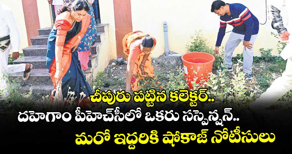దహెగాం, వెలుగు: కుమ్రం భీం ఆసిఫాబాద్ కలెక్టర్ హరిత చీపురు పట్టింది. జిల్లాలోని దహెగాం మండలంలో శనివారం ఆమె ఆకస్మిక తనిఖీ చేపట్టారు. హాస్పిటల్ చుట్టుపక్కలా పిచ్చిమొక్కలు, చెత్త, ప్లాస్టిక్ తో నిండిపోయి ఉండడం చూసి మెడికల్ ఆఫీసర్పై ఆగ్రహం వ్యక్తం చేశారు. ఇక మీరు మారరు అంటూ స్వయంగా ఆమె చీపురు చేతపట్టి ఊడ్చేశారు. వార్డులు, మందుల నిల్వలు, రిజిస్టర్లు, పరిసరాలను పరిశీలించారు.
