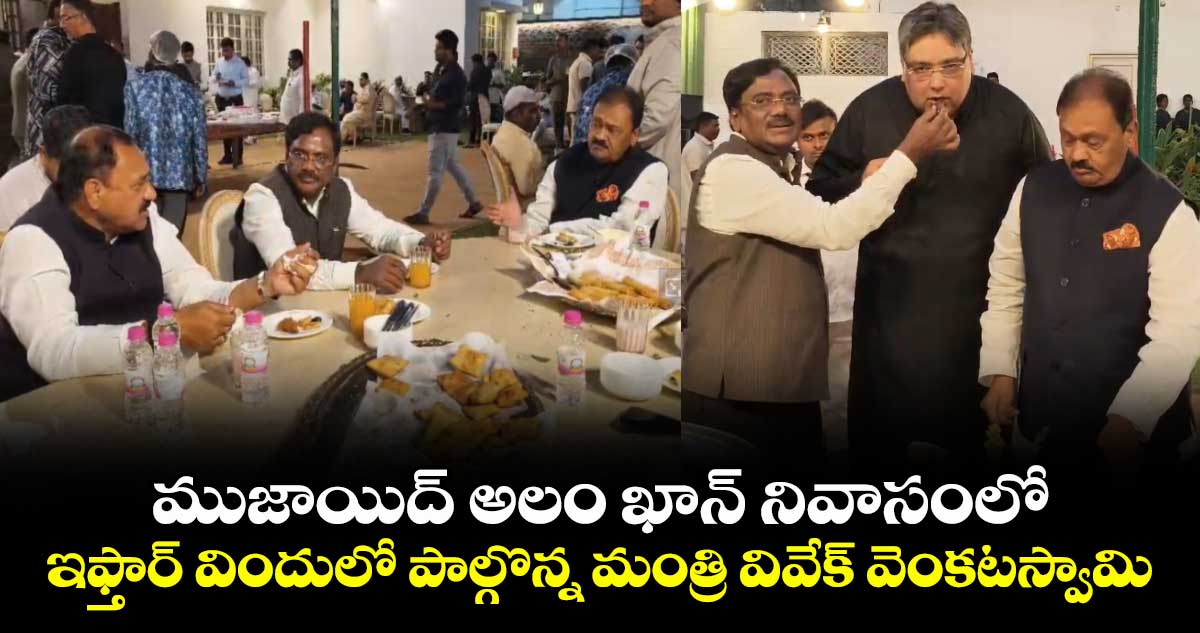 టీపీసీసీ వైస్ ప్రెసిడెంట్ ముజాయిద్ అలం ఖాన్ నివాసంలో ఏర్పాటు చేసిన ఇఫ్తార్ విందులో పాల్గొన్నారు మంత్రి వివేక్ వెంకటస్వామి. ఆదివారం ( మార్చి 8 ) జరిగిన ఈ కార్యక్రమంలో మంత్రి వివేక్ సహా టీపీసీసీ చీఫ్ మహేష్ కుమార్ గౌడ్, ప్రభుత్వ సలహాదారు షబ్బీర్ అలీ ఇతర కాంగ్రెస్ నేతలు పాల్గొన్నారు. ఈ సందర్భంగా మాట్లాడుతూ కీలక వ్యాఖ్యలు చేశారు మంత్రి వివేక్. రంజాన్ మాసంలో ముస్లింలు ఒక్కపొద్దులు ఉంటూ పవిత్రంగా దేవుడిని ఆరాధిస్తారని అన్నారు.