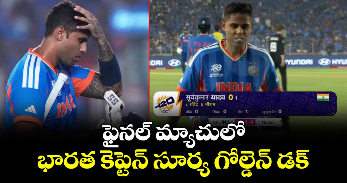 గాంధీ నగర్: టీ20 వరల్డ్ కప్ ఫైనల్ మ్యాచులో టీమిండియా కెప్టెన్ సూర్య కుమార్ యాదవ్ తీవ్రంగా నిరాశపర్చాడు. పరుగుల ఖాతా తెరవకుండానే గోల్డెన్ డకౌట్ అయ్యాడు. 16 ఓవర్లో ఇషాన్ కిషన్ ఔటైన తర్వాత క్రీజులోకి వచ్చిన స్కై.. నీషమ్ బౌలింగ్లో షాట్ ఆడిబోయి క్యాచ్ ఔట్ అయ్యాడు.