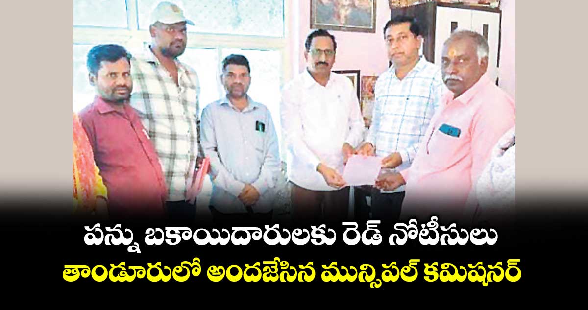 తాండూర్, వెలుగు: తాండూరు మున్సిపాలిటీలో దీర్ఘకాలంగా ఆస్తి పన్ను చెల్లించకుండా మొండికేస్తున్న యజమానులపై మున్సిపల్ అధికారులు కఠిన చర్యలకు ఉపక్రమించారు. మున్సిపల్ కమిషనర్ మధుసూదన్ రెడ్డి ఆదివారం పట్టణంలో ప్రత్యేక డ్రైవ్ నిర్వహించి, బకాయిదారులకు రెడ్ నోటీసులు అందజేశారు. ఈ సందర్భంగా మాట్లాడుతూ.. సకాలంలో పన్నులు చెల్లించి మున్సిపాలిటీ అభివృద్ధికి సహకరించాలని, నోటీసులు అందుకున్న వారు వెంటనే స్పందించి బకాయిలు చెల్లించాలని కోరారు.