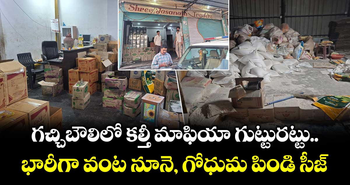 గచ్చిబౌలి పరిధిలోని వట్టినగులపల్లి ఇందిరమ్మ కాలనీలో ఉన్న శ్రీ జస్నాత్ ట్రేడర్స్ అనే దుకాణంపై దాడి చేసి, భారీ మొత్తంలో కల్తీ వంట నూనె, గోధుమ పిండిని స్వాధీనం చేసుకున్నారు పోలీసులు.దాడిలో రాజస్థాన్కు చెందిన వ్యక్తి గడువు ముగిసిన వివిధ కంపెనీల వంట నూనెలను సేకరించి, వాటిని సోయాబీన్ నూనెతో కలిపి గోల్డ్ ఫేస్ లైట్, రాజ్ గోల్డ్ పామ్ ఆయిల్, గోల్డ్ డ్రై, గోల్డ్ ఫ్రెష్, హెల్త్ కేర్, నంది ప్యూర్ పూజా ఆయిల్ వంటి పేర్లతో మళ్లీ ప్యాకింగ్ చేసి మార్కెట్లో విక్రయిస్తున్నట్లు పోలీసులు గుర్తించారు.అదే విధంగా పలు కంపెనీలకు చెందిన గడువు ముగిసిన గోధుమ పిండిని సేకరించి జస్నాత్ గోల్డ్ చక్కి అట్టా పేరుతో తిరిగి ప్యాక్ చేసి అమ్ముతున్నట్లు గుర్తించామని తెలిపారు పోలీసులు.