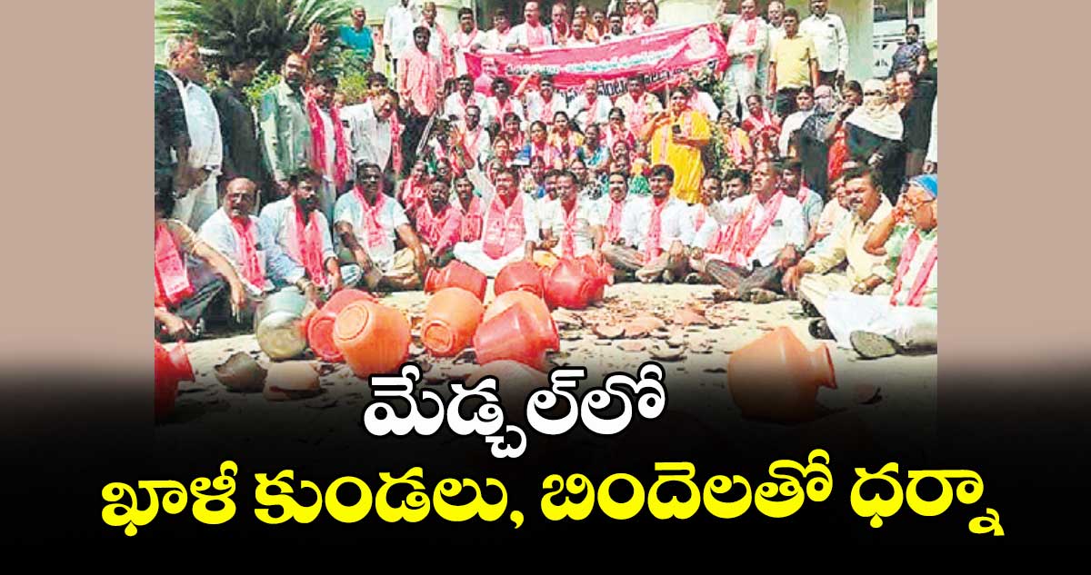 మేడ్చల్, వెలుగు: మేడ్చల్ పట్టణంలో తీవ్రంగా ఉన్న తాగునీటి సమస్యను వెంటనే పరిష్కరించాలని డిమాండ్ చేస్తూ సోమవారం బీఆర్ఎస్ ఆధ్వర్యంలో పట్టణవాసులు ధర్నాకు దిగారు. కాలనీల నుంచి ఖాళీ కుండలు, బిందెలతో ర్యాలీగా వచ్చి మున్సిపల్ సర్కిల్ కార్యాలయం ముందు బైఠాయించారు. కుండలు, బిందెలను రోడ్డుపై పగలగొట్టారు.