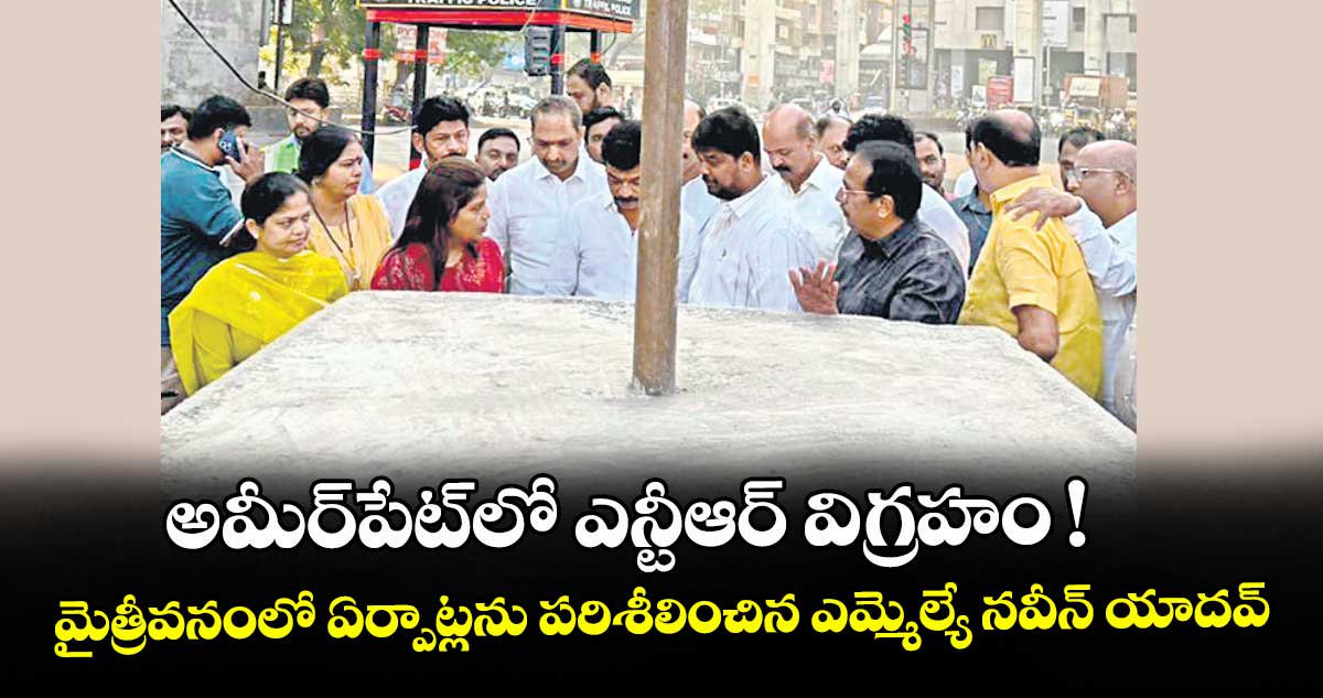 జూబ్లీహిల్స్ , వెలుగు: జూబ్లీహిల్స్ నియోజకవర్గంలోని అమీర్పేట్మైత్రీవనం చౌరస్తాలో ఎన్టీఆర్విగ్రహాన్ని ఏర్పాటు చేయనున్నారు. దీనికి సంబంధించి కొనసాగుతున్న పనులను సోమవారం జూబ్లీహిల్స్ ఎమ్మెల్యే నవీన్ యాదవ్ పరిశీలించారు. జూబ్లీహిల్స్ ఉప ఎన్నికల టైంలో ముఖ్యమంత్రి రేవంత్ రెడ్డి ఇచ్చిన హామీ మేరకు అమీర్పేట్లోని మైత్రీవనంలో ఎన్టీఆర్ విగ్రహాన్ని ఏర్పాటు చేసే పనులు చేపట్టామని, సీఎం ఆదేశాల మేరకు పరిశీలించినట్టు చెప్పారు. త్వరలోనే విగ్రహాన్ని ఏర్పాటు చేసి జూబ్లీహిల్స్ ఎన్నికల్లో ఇచ్చిన హామీని నెరవేరుస్తామని ఆయన ప్రకటించారు.
