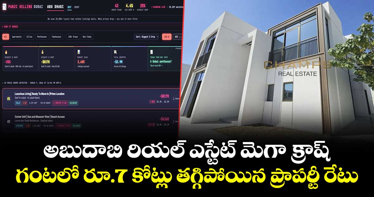 ప్రపంచ సంపన్నులకు అడ్డాగా పేరుగాంచిన అబుదాబి రియల్ ఎస్టేట్ మార్కెట్ ఒక్కసారిగా కుప్పకూలుతోంది. ఇన్నాళ్లూ ఆకాశమే హద్దుగా పెరిగిన ప్రాపర్టీ ధరలు.. ఇప్పుడు అక్కడ నేలచూపులు చూస్తున్నాయి. కేవలం గంటల వ్యవధిలోనే కోట్ల రూపాయల విలువ కరిగిపోతుండటం ఇన్వెస్టర్లలో వణుకు పుట్టిస్తోంది. తాజాగా ప్రాపర్టీ రేటు పడిపోవటం చూస్తుంటే అబుదాబి రియల్ ఎస్టేట్ మార్కెట్ ఒక పెద్ద క్రాష్ దిశగా వెళ్తోందనే సంకేతాలు స్పష్టంగా కనిపిస్తున్నాయి.