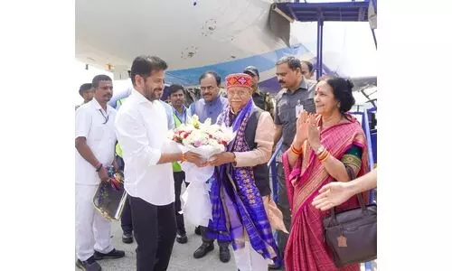హైదరాబాద్: తెలంగాణకు నూతన గవర్నర్ గా నియమితులైన శివ ప్రతాప్ శుక్లా రాష్ట్రానికి విచ్చేసిన సందర్భంగా రాజీవ్ గాంధీ అంతర్జాతీయ విమానాశ్రయంలో ముఖ్యమంత్రి ఎ. రేవంత్ రెడ్డి స్వాగతం పలికారు. గవర్నర్ కు స్వాగతం పలికిన వారిలో ముఖ్యమంత్రితో పాటు మంత్రి దుద్దిళ్ల శ్రీధర్ బాబు, ప్రభుత్వ ప్రధాన కార్యదర్శి కె. రామకృష్ణా రావు, డిజిపి బి. శివధర్ రెడ్డితో పాటు ఇతర ఉన్నతాధికారులు ఉన్నారు.