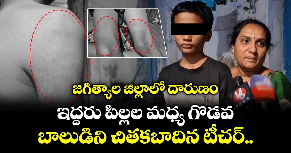 జగిత్యాల జిల్లాలో దారుణం జరిగింది. స్కూల్లో ఇద్దరు పిల్లల మధ్య గొడవ కారణంగా ఓ బాలుడిని చితకబాదింది ఓ టీచర్. మంగళవారం ( మార్చి 10 ) జరిగిన ఈ ఘటనకు సంబంధించి వివరాలిలా ఉన్నాయి… జగిత్యాల జిల్లాలోని కోరుట్ల పట్టణంలోని గౌతమ్ మోడల్ స్కూల్లో ఐదో తరగతి చదువుతున్న సాత్విక్ అనే బాలుడిని చితకబాదింది లేడీ టీచర్. స్కూల్లో ఇద్దరు పిల్లలతో సాత్విక్ గొడవపడ్డాడన్న కారణంతో దారుణంగా చితకబాదింది టీచర్.