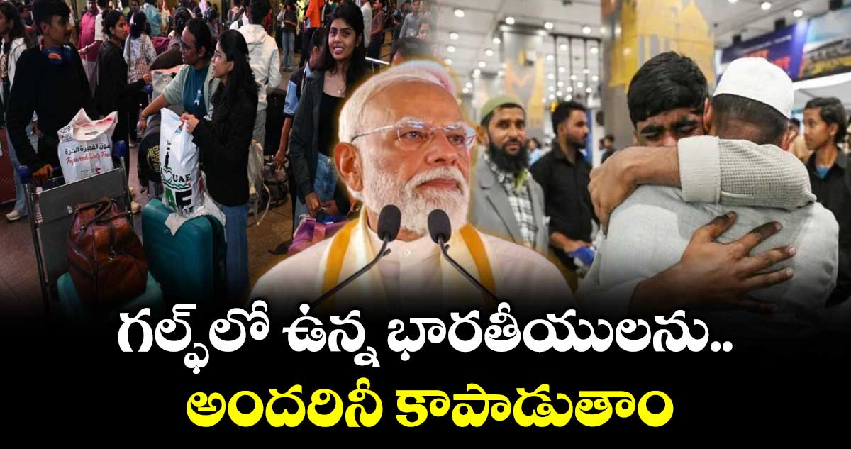 గల్ఫ్ లో ఉన్న భారతీయులను అందరినీ కాపాడుతామని అన్నారు ప్రధాని మోదీ. కేరళ పర్యటనలో భాగంగా బుధవారం (మార్చి 11) ఎర్నాకుళం లో మాట్లాడిన ప్రధాని.. సంక్షోభ సమయంలో ప్రజలను ఒంటరిగా విడిచిపెట్టమని అన్నారు. ఇండియన్ ఎంబసీలు 24 గంటలు సాయం అందిస్తున్నాయని చెప్పారు.