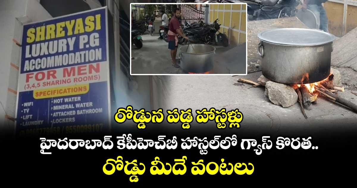 కేపీహెచ్బీ కాలనీలో ఉన్న హాస్టల్లో గ్యాస్ కొరత తీవ్ర సమస్యగా మారింది. హాస్టల్లో వంటకు ఉపయోగించే గ్యాస్ సిలిండర్లు అందుబాటులో లేకపోవడంతో అక్కడి సిబ్బంది, నివాసితులు రోడ్డుపై తాత్కాలికంగా కట్టెల పొయ్యిలు ఏర్పాటు చేశారు. రోడ్డుపైనే వంటలు చేయాల్సిన పరిస్థితి ఏర్పడింది.