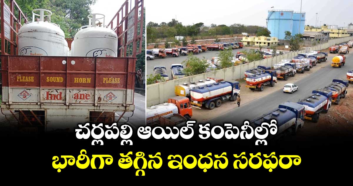 హైదరాబాద్: చర్లపల్లిలోని భారత్ పెట్రోలియం, హిందుస్థాన్ పెట్రోలియం, ఇండియన్ ఆయిల్ కార్పొరేషన్ కంపెనీల్లో ఇంధన సరఫరా భారీగా తగ్గింది. గ్యాస్ సరఫరా గతంతో పోల్చుకుంటే భారీగా తగ్గి మళ్లీ స్వల్పంగా పెరిగింది. చర్లపల్లిలోని మూడు గ్యాస్ ప్లాంట్ల నుంచి ఏపీ, కర్ణాటక, మహారాష్ట్ర వంటి పొరుగు రాష్ట్రాలకు ఇంధన సరఫరా జరుగుతుంది.