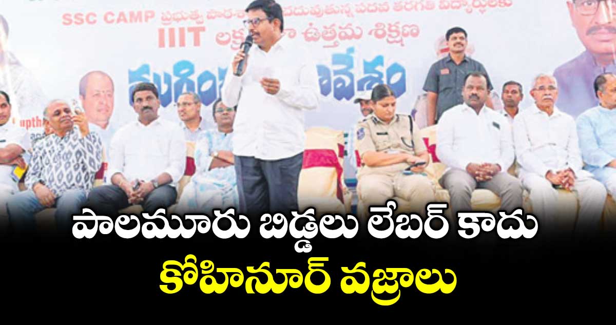 మహబూబ్ నగర్ అర్బన్, వెలుగు : పాలమూరు బిడ్డలు లేబర్ కాదు.. కోహినూర్ వజ్రాలని మహబూబ్ నగర్ ఎమ్మెల్యే యెన్నం శ్రీనివాస్ రెడ్డి కొనియాడారు. మహబూబ్ నగర్ ఫస్ట్, వందేమాతరం ఫౌండేషన్ ఆధ్వర్యంలో ప్రభుత్వ పాఠశాల విద్యార్థులకు ఐఐఐటీ లక్ష్యంగా నిర్వహించిన 45 రోజుల శిక్షణ శిబిరం ముగింపు సమావేశంలో ఆయన మాట్లాడారు.